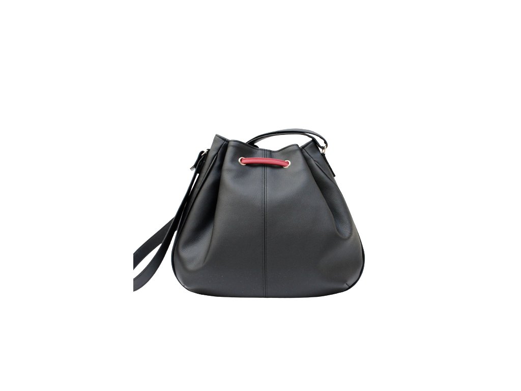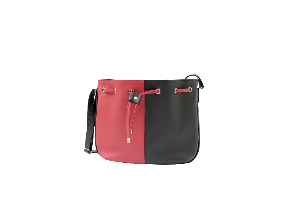 Kabelka se stahuje stahovacím páskem, který prochází přes průchodky a stahovací smyčku. Na konci stahovacího pásku jsou ozdobné kovové koncovky. Uvnitř kabelky jsou dvě kapsičky, jedna na zip pro možnost uschování důležitých věcí, druhá nakládaná (našitá). Nosit můžete přes rameno nebo šikmo přes tělo díky posuvnému popruhu. Popruh je upevněn nýty.