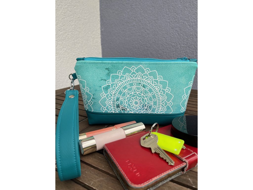 Kosmetická taštička motiv Mandaly tyrkys s poutkem 2