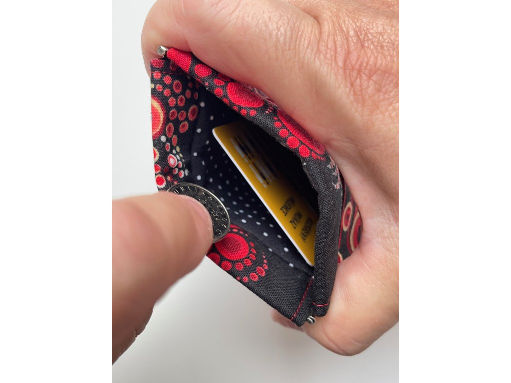 Mini peněženka, tak akorát do ruky, když potřebujete sebou jen to nejnutnější na pružné perko. Zmáčknete z obou konců proti sobě a je otevřeno. Na pár mincí, složené papírové peníze a kartu, event. klíče a další malé cennosti.