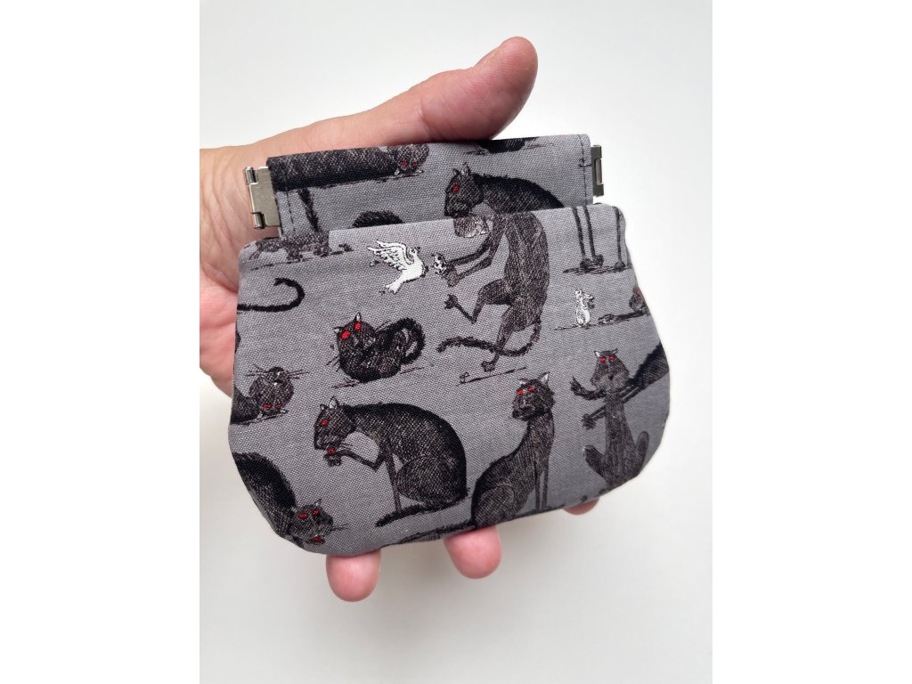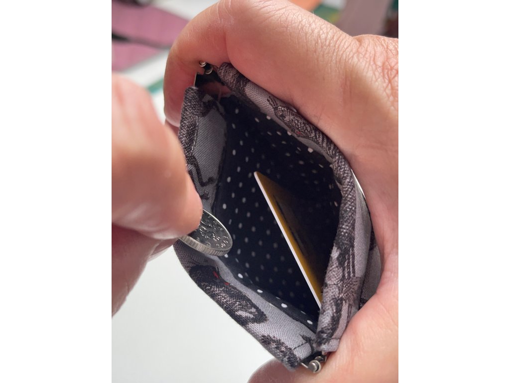 Mini peněženka, tak akorát do ruky, když potřebujete sebou jen to nejnutnější na pružné perko. Zmáčknete z obou konců proti sobě a je otevřeno. Na pár mincí, složené papírové peníze a kartu, event. klíče a další malé cennosti.